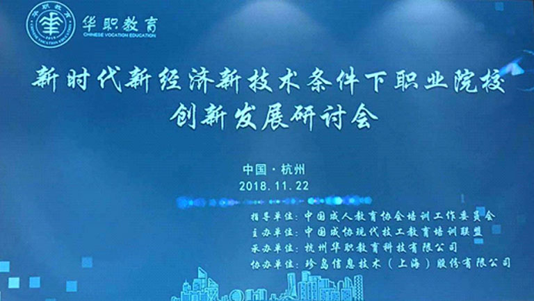 11月22日,由中國成人教育協(xié)會(huì)現(xiàn)代技工教育培訓(xùn)聯(lián)盟主辦,杭州華職教育科技有限公司承辦,珍島集團(tuán)協(xié)辦的“新時(shí)代新經(jīng)濟(jì)新技術(shù)條件下職業(yè)院校創(chuàng)新發(fā)展研討會(huì)”在杭州順利召開。來自國內(nèi)各職業(yè)院校、研究中心、政府機(jī)構(gòu)及企業(yè)的領(lǐng)導(dǎo)、專家和學(xué)者參加了本次會(huì)議。珍島集團(tuán)總裁趙旭隆和副總裁張蓬出席會(huì)議并做演講。