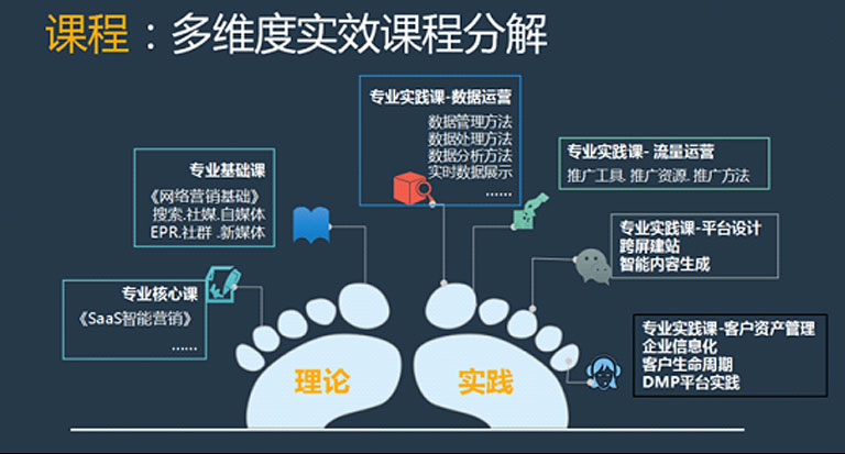 珍島院校智能營銷實(shí)訓(xùn)中心借鑒珍島13年的智能營銷經(jīng)驗(yàn),對課程進(jìn)行多維度分解,從基礎(chǔ)課程到核心課程,再到實(shí)踐課程(數(shù)據(jù)運(yùn)營、流程運(yùn)營、平臺(tái)設(shè)計(jì)、客戶資產(chǎn)管理......),課程內(nèi)容層層遞進(jìn),將枯燥的理論學(xué)習(xí)變得有趣、生動(dòng)、有效果。