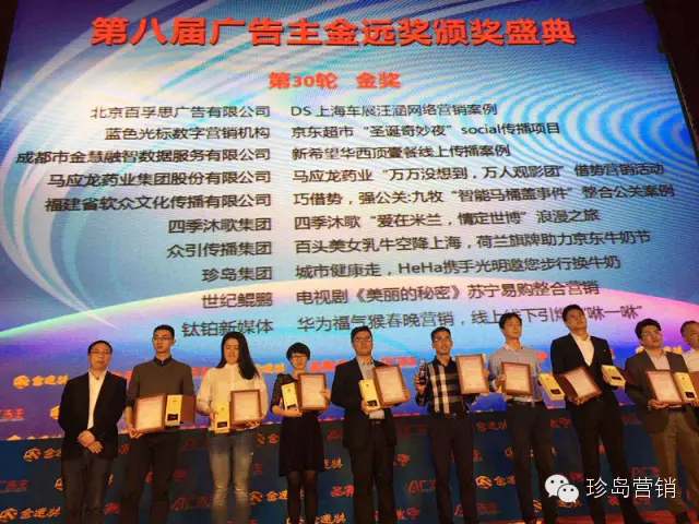 “中國廣告主金遠獎”取意“廣告點石成金,品牌高聲致遠”,是由廣告主網(wǎng)、《廣告主》雜志品微會主辦,中國傳媒大學(xué)MBA學(xué)院提供學(xué)術(shù)支持,是結(jié)合本土實際打造的大中華區(qū)營銷傳播領(lǐng)域的權(quán)威獎項;峰會與國際全面接軌,邀請業(yè)內(nèi)知名人士擔(dān)當(dāng)各類獎項的評審,所有獎項經(jīng)過嚴(yán)格、科學(xué)、公正的評審程序。珍島集團此次包攬六項大獎,與十多年來的執(zhí)著創(chuàng)新密不可分,也標(biāo)志著珍島集團在行業(yè)內(nèi)領(lǐng)軍企業(yè)的地位。