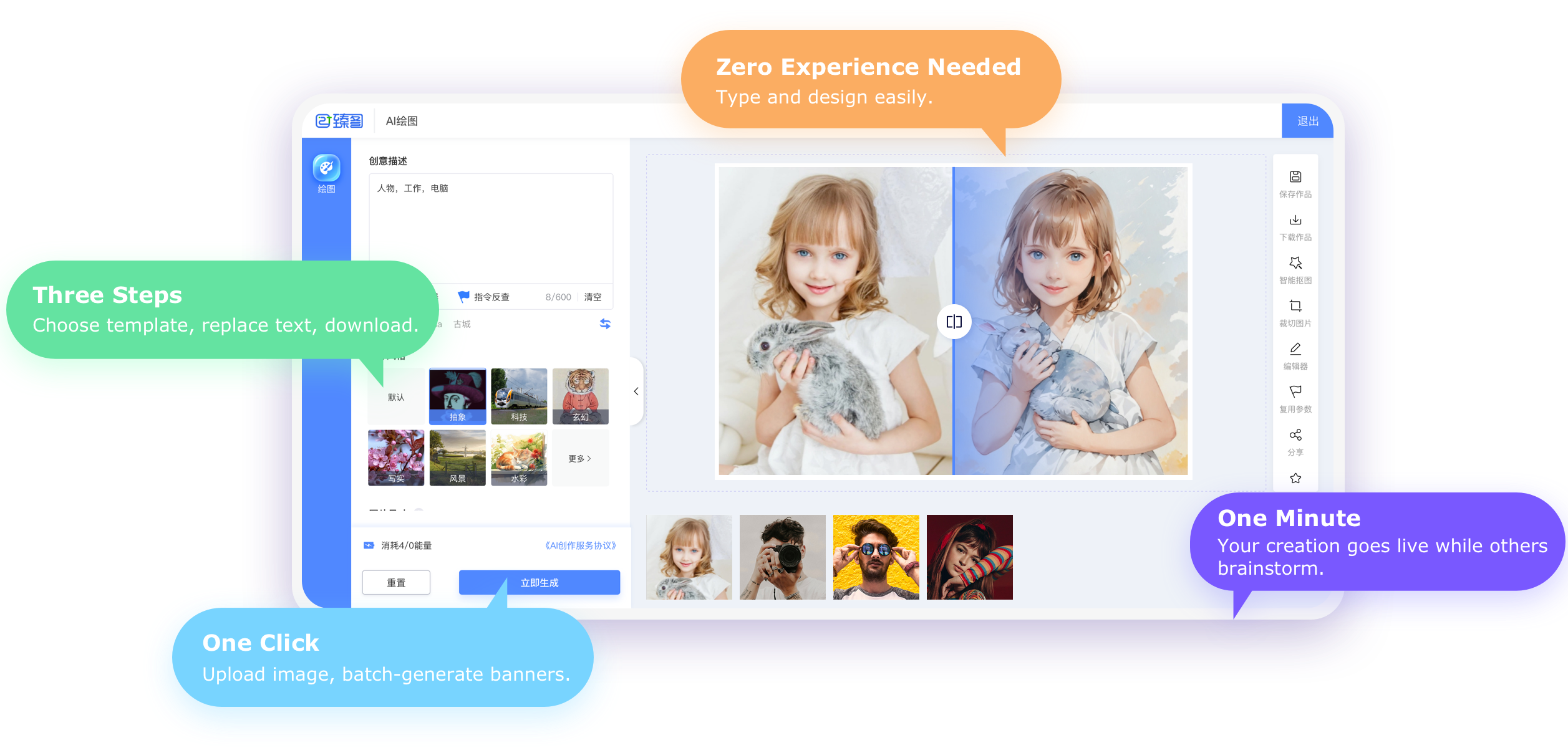 Create multiple design images with one click to enhance marketing swiftly.