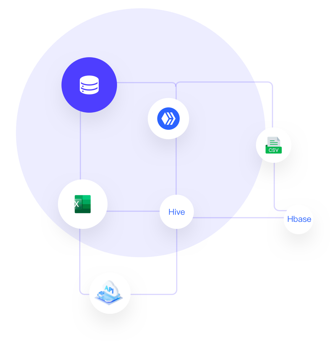 databases such as MySQL, Hive, ClickHouse, HBase; supports Excel/CSV file import; API interface integration.