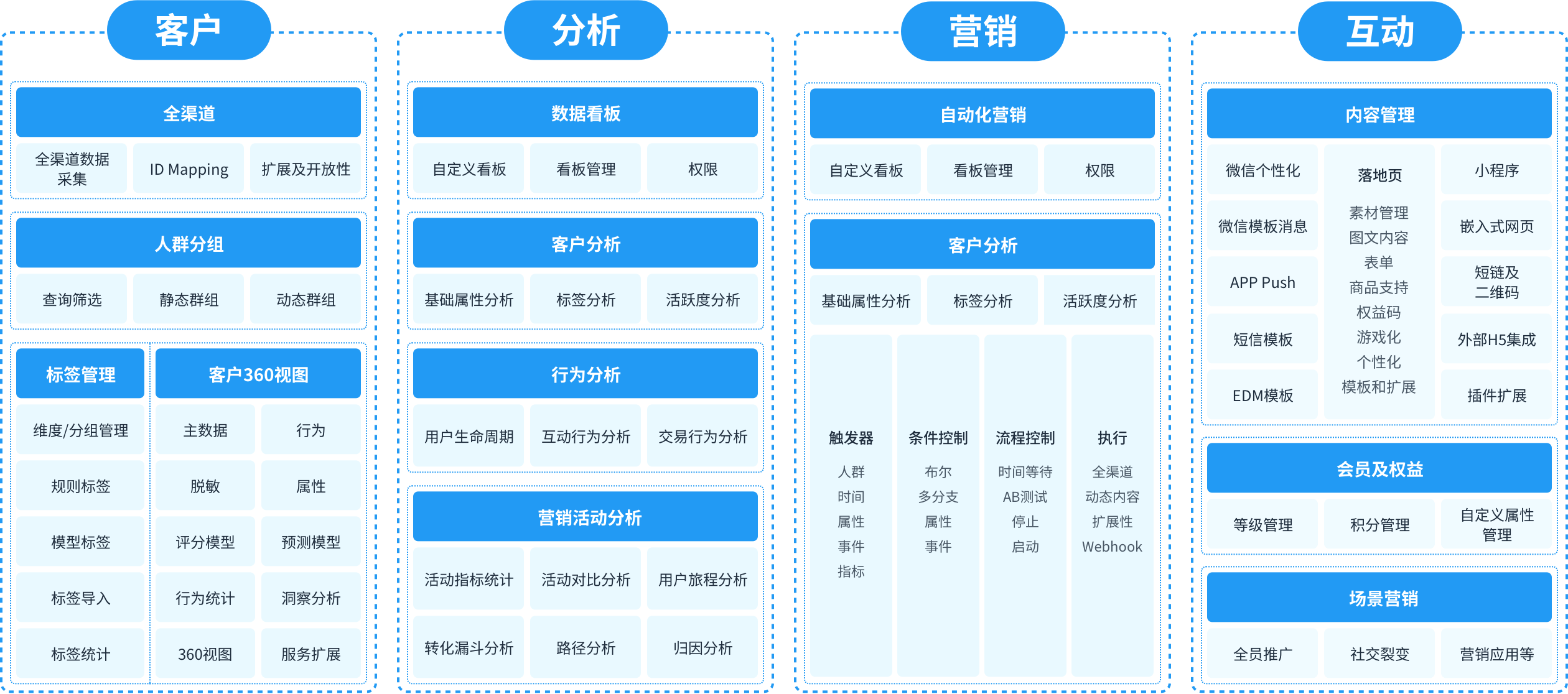 Marketingforce立足數(shù)字營銷領(lǐng)域,為銀行、券商、保險等機(jī)構(gòu)提供基于客戶數(shù)據(jù)深度分析的營銷產(chǎn)品矩陣。